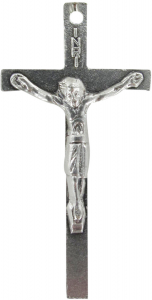 CR FA/024 CROCE BARRETTA CON CRISTO STAMPATO IN METALLO OSSIDATO cm 4 CIRCA