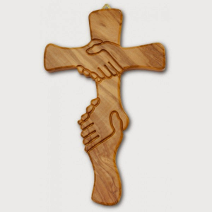 CROCE DELL'AMICIZIA IN ULIVO MANO NELLA MANO cm 28 CIRCA