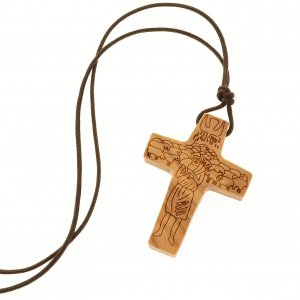 CR FR/059 CONFEZIONE CARTONCINO CON CROCE BUON PASTORE cm 3x4,5 CIRCA IN ULIVO DA COLLO