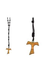 RS FR/035 ROSARIO IN CORDA CON CROCE TAU MARRONE