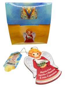 PR FR/035 ANGELO DEI SACRAMENTI IN LEGNO cm 13x16 CIRCA CON CONFEZIONE CARTONCINO