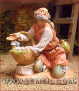 Pastore in ginocchio con cesta di uova cm 11