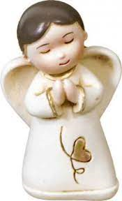 Docissimo angelioletto in resina con decori dorati e mani giunte.