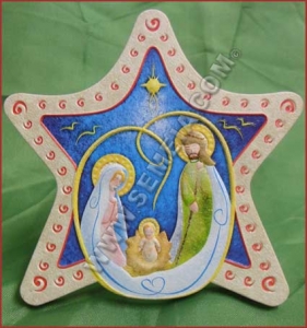 STELLA CON NATIVITA' IN POLIMERO EFFETTO PIETRA cm 10x11 CIRCA DA APPOGGIO/APPENDERE