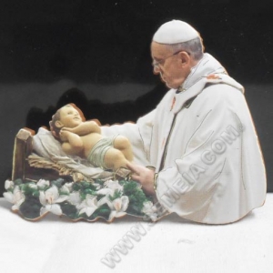 QUADRETTO SCONTORNATO PAPA C/BAMBINO GESU' cm 13x11 CIRCA CON IMM. ORO A CALDO DA APPOGGIO/APPENDERE