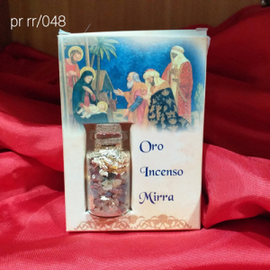 CARTONCINO CON FLACONCINO DONI ORO INCENSO E MIRRA