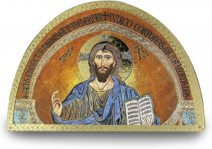 QD FA/050 STAMPA SU LEGNO AD ARCO CRISTO CON LIBRO APERTO cm 18x12 CIRCA DA APPOGGIO