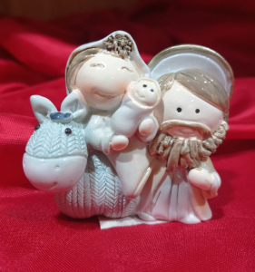 NATIVITA' IN RESINA PORCELLANATA cm 6 CIRCA MARIA SU ASINELLO