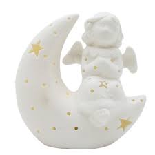 PR RR/148 ANGELO PORCELLANA BIANCA SU LUNA CON LUCI cm 10x5,5x10