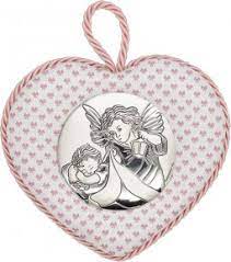 SOPRACULLA CUORE CON PLACCA IN BILAMINATO ARGENTO E CARILLON