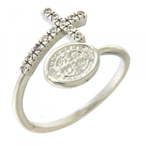 RD RF/035-AG ANELLO ARGENTO TIT.925°/°° CON ZIRCONI CROCE E MED. SAN BENEDETTO