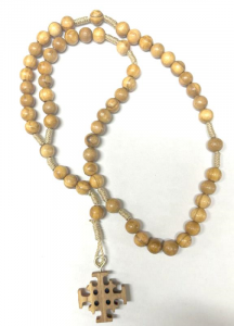 ROSARI LEGNO ULIVO 6 MM LEG. CORDA CROCE GERUSALEMME