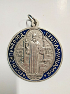 MD LA/008 MEDAGLIA SAN BENEDETTO METALLO OX SMALTO DIAM. cm 3,2 CIRCA + BIGL.PIEGH.