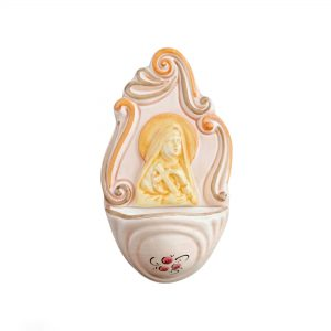 AQ LG/005 ACQUASANTIERA DEVOZIONALE FOGLIA cm 14x7,5 CIRCA COLORATA