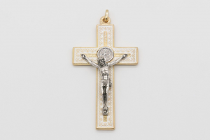 CR LA/031 CROCE FIORE METALLO SM. DOR. SAN BENEDETTO cm 12x7,2 CIRCA